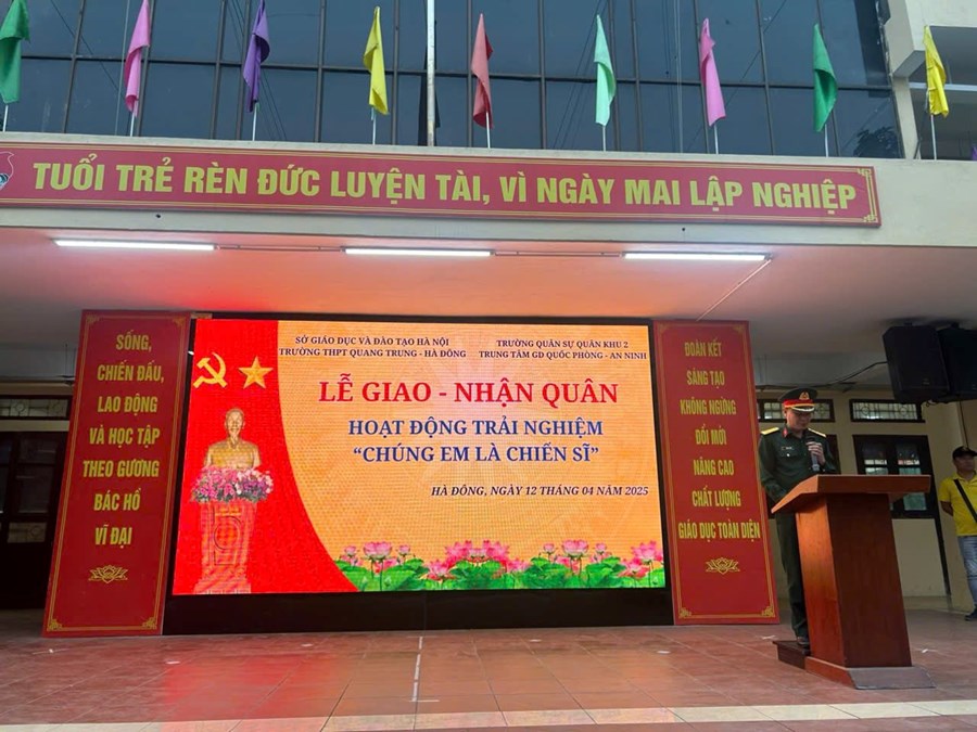 Sáng ngày 12/4/2024, các em học sinh khối 10, khối 11 trường THPT Quang Trung - Hà Đông đã mặt tại đơn vị- trường Quân sự quân khu 2, Vĩnh Yên- Vĩnh Phúc có để bắt đầu hoạt động trải nghiệm 2 ngày 1 đêm đầy ý nghĩa trong chương trình “Chúng em là chiến sĩ”.
