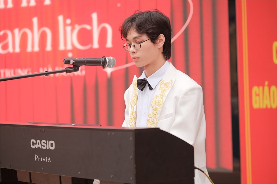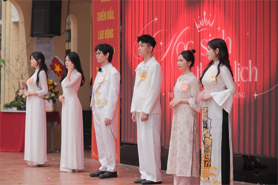 - Trang phục học đường & áo dài: Các thí sinh diện trang phục học sinh thanh lịch, sau đó khoác lên mình bộ áo dài truyền thống (nữ) và vest lịch lãm (nam). Phần thi giúp tôn vinh vẻ đẹp thanh nhã và phong thái tự tin của từng thí sinh.
